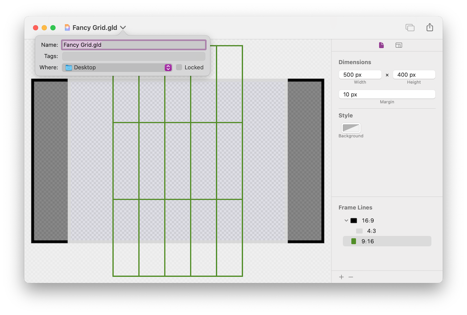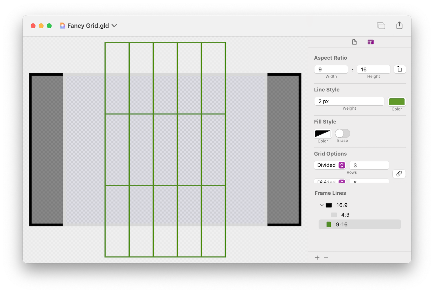 Add frame lines in the aspect ratios you need for the shot. Guidelines is designed to be as fast as possible, no more multi-step trips to a graphics editor.